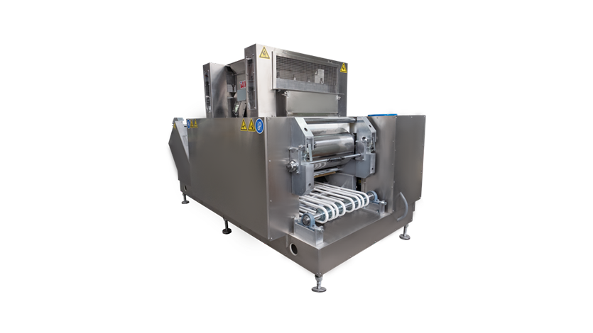 4) A rotary dough breaking system at the end of feeding tip helps to break down the mixed dough before entering the next roller station.