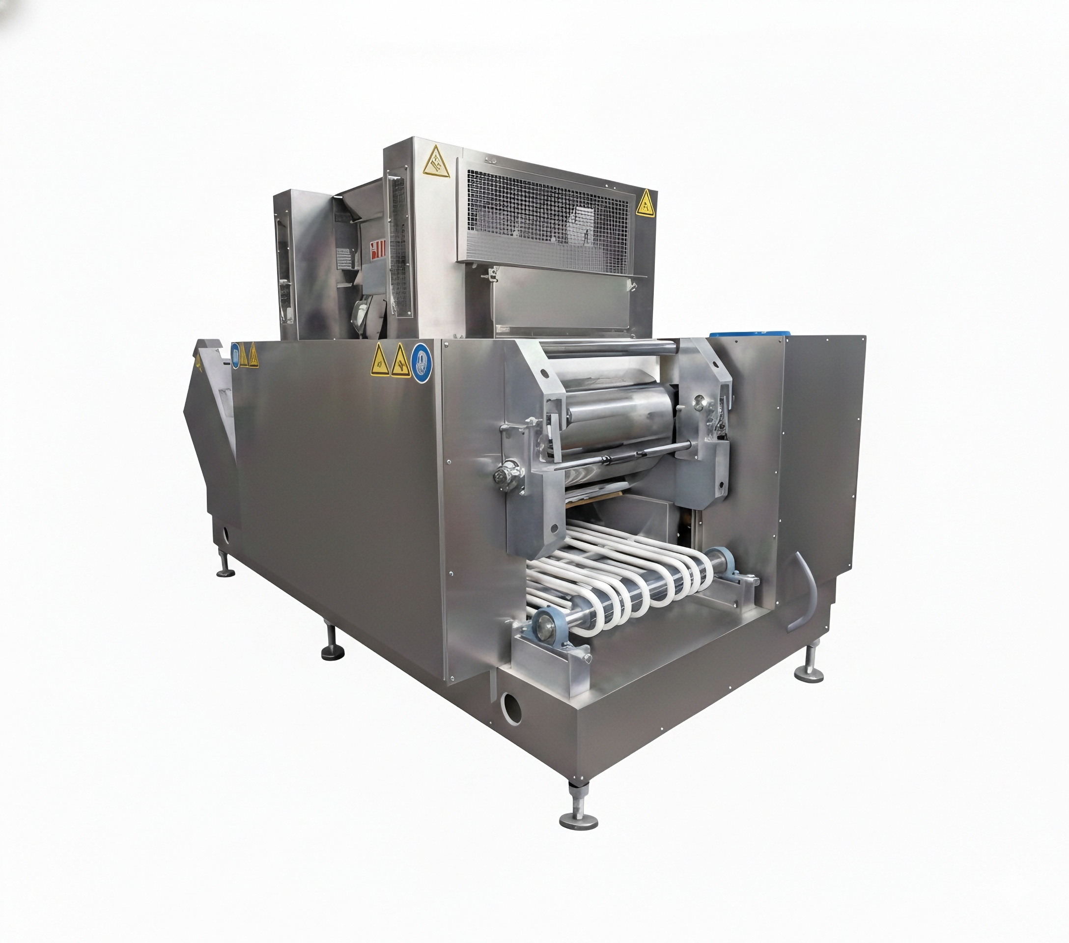 1. Progressive roller configuration – Seven pairs of high-strength alloy steel rollers (350mm to 120mm diameter) provide gradual thickness reduction for optimal dough handling.