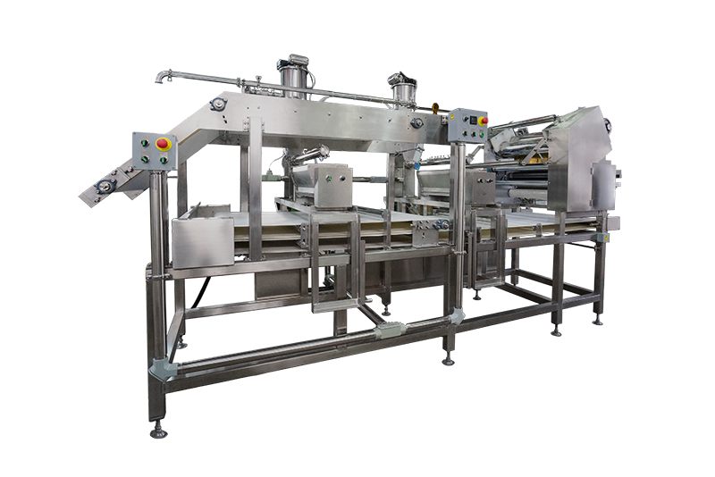 The Dough Sheet Stacking Machine delivers high efficiency and versatility through its all-in-one design, integrating stacking and cutting functions to reduce equipment footprint and simplify product changeovers. Its advanced digital control system allows precise adjustment of stacking length, layer count, and product dimensions, while enabling recipe storage for consistent, repeatable production. Designed for multi-product flexibility, it easily switches between sheet products and fresh noodles, supporting diverse manufacturing needs. Additionally, the automatic starch management system ensures continuous operation with self-refilling capability, and an optional bulk bag solution further minimizes manual intervention, improving overall productivity and operational convenience.