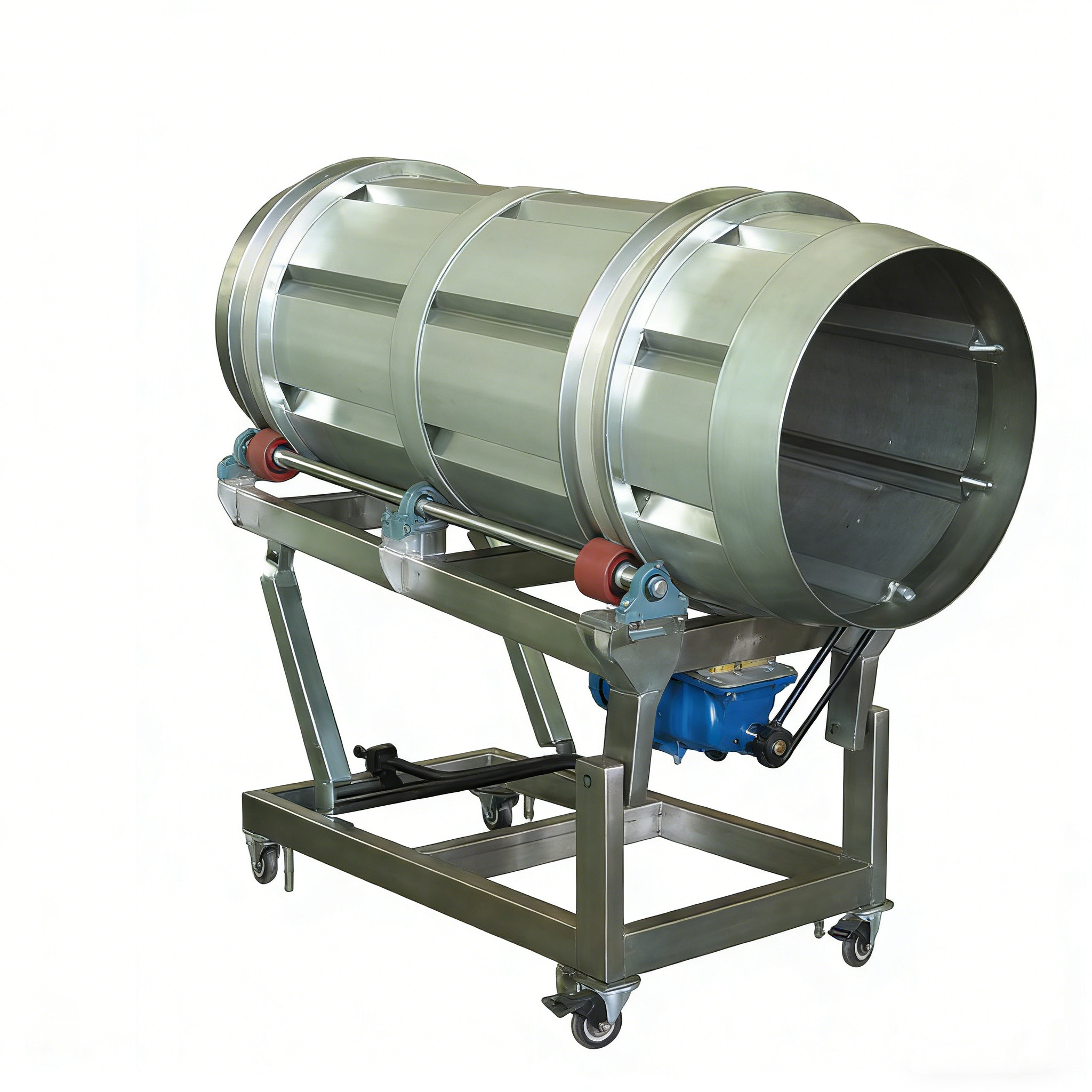 This heavy-duty seasoning tumbler is engineered for uniform coating and flavoring of food products in commercial production environments.