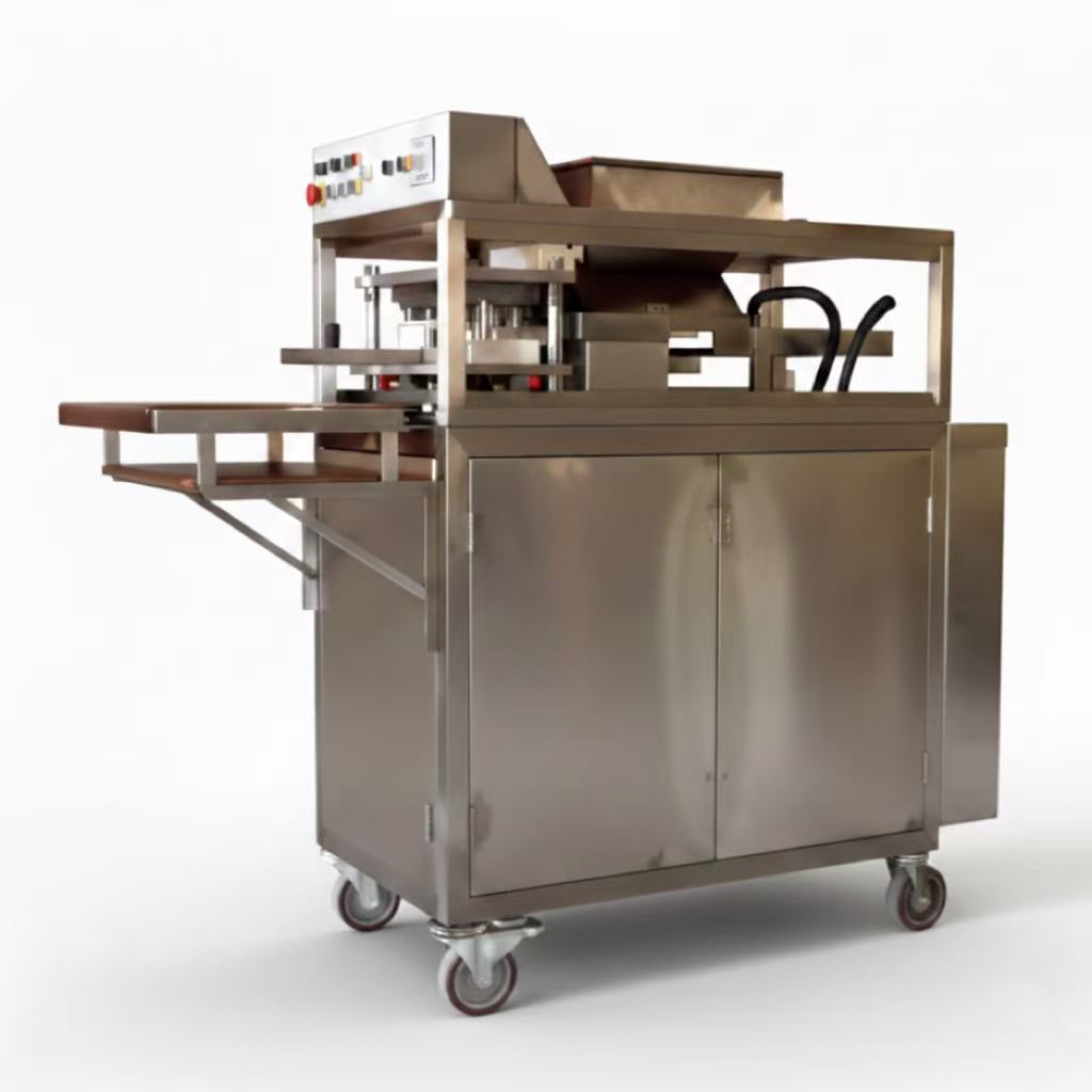 This advanced hydraulic briquette press is a versatile forming solution engineered for high-volume production of compacted food products.